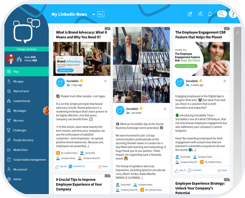 Advocacy only works when it’s easy. The right tools remove friction and give employees confidence in what they share. Platforms like Sociabble make sharing simple. Employees can access pre-approved content and post it in one click.